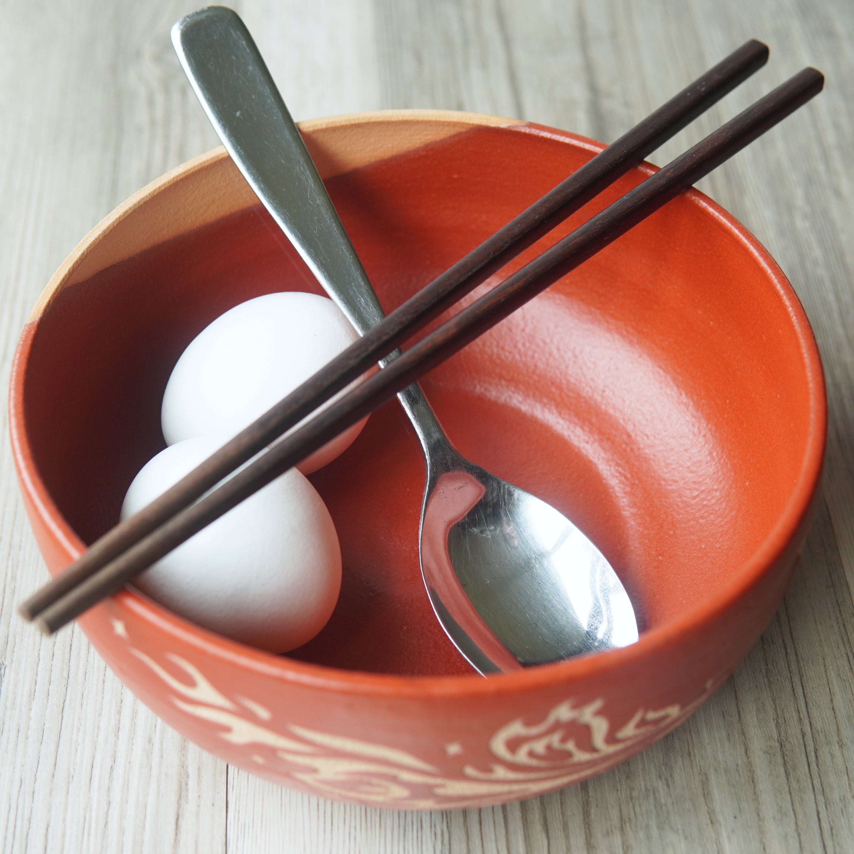 Handmade pottery bowls, wheel-thrown in Portland, Oregon, then engraved with our original art. Choose the versatile medium size for cereal, ice cream, soup, or sides. Our larger ramen bowls are also great for pho, pasta, and displaying fruit.