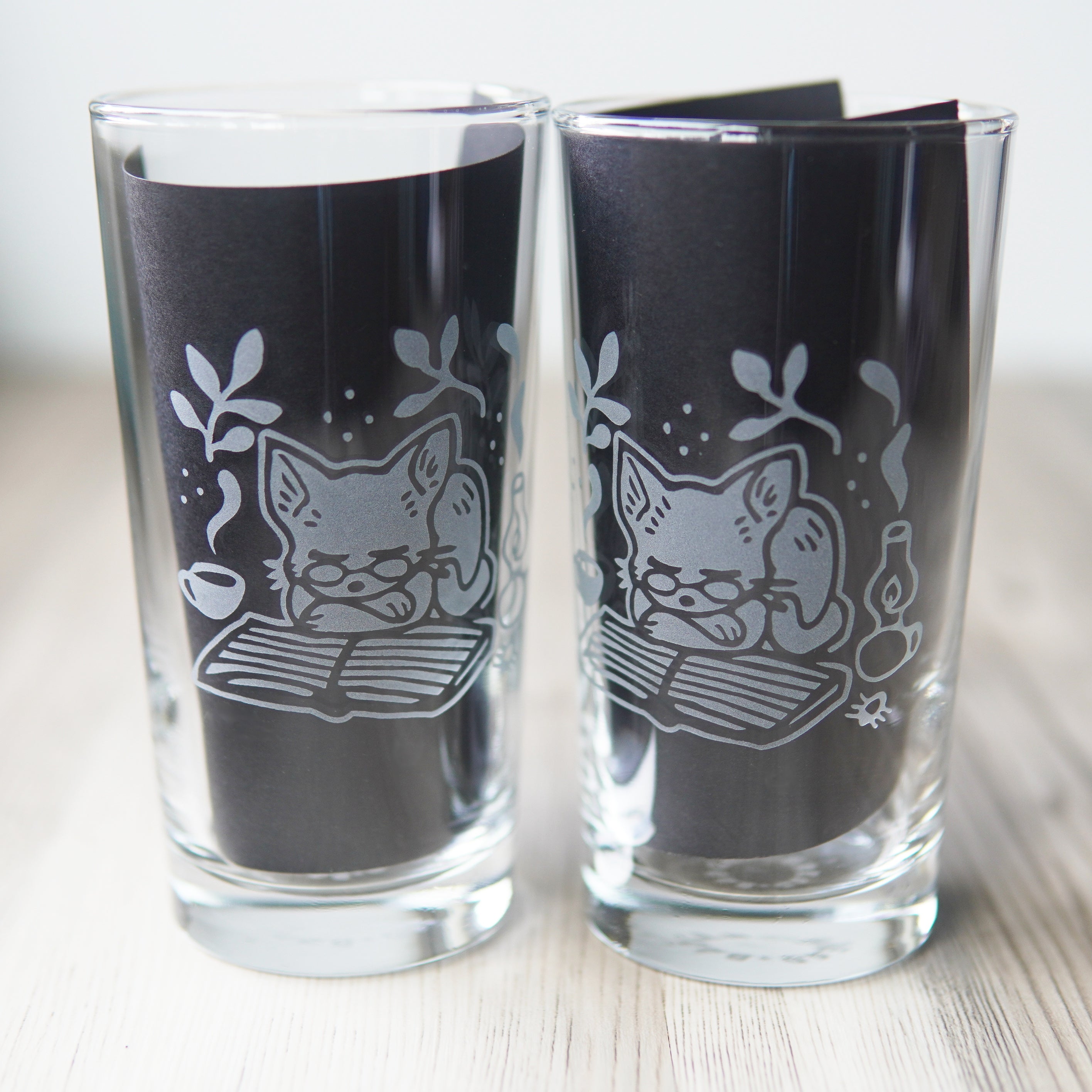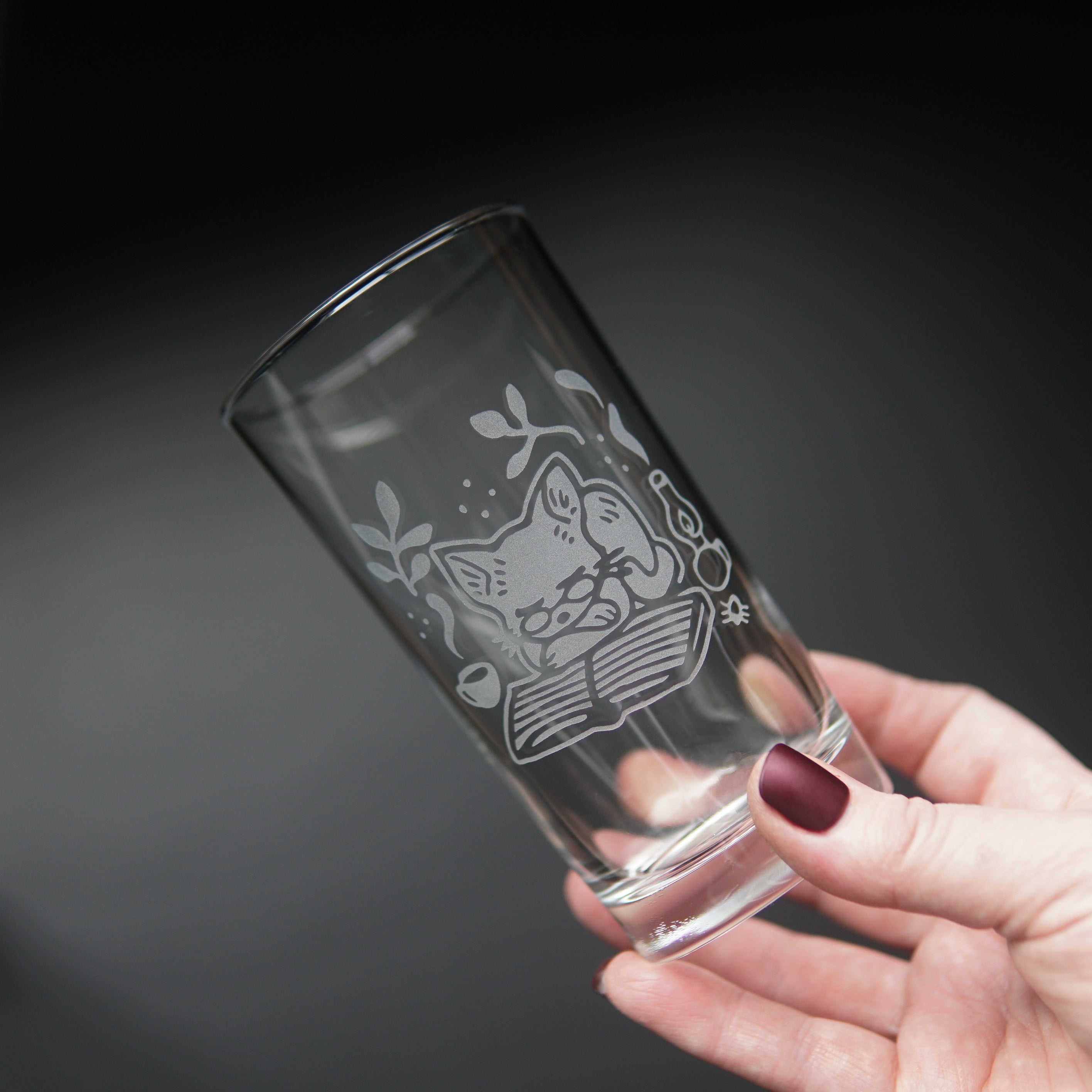 Unwind after a long day with our Book Cat Highball Glass! Featuring a cozy napping cat, this etched cocktail barware is the perfect addition to your relaxing nights in. Embrace your introverted side with this cute glass.