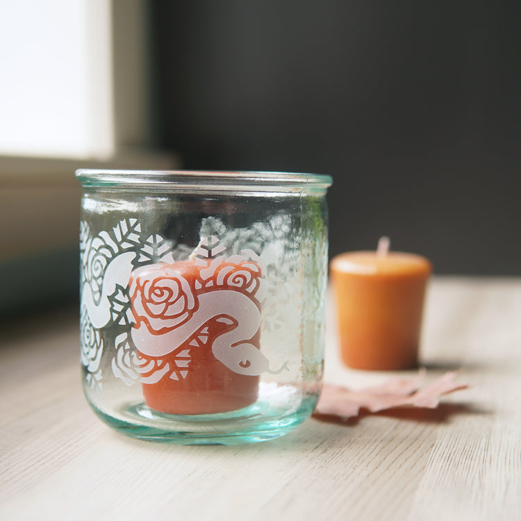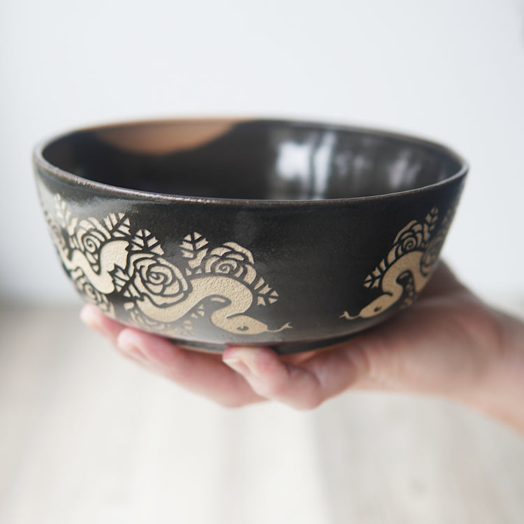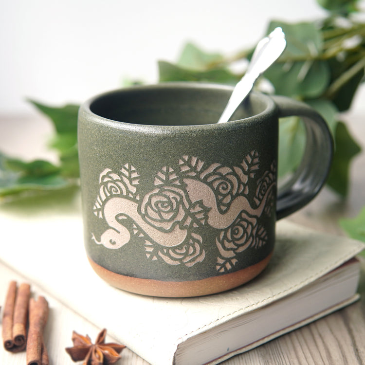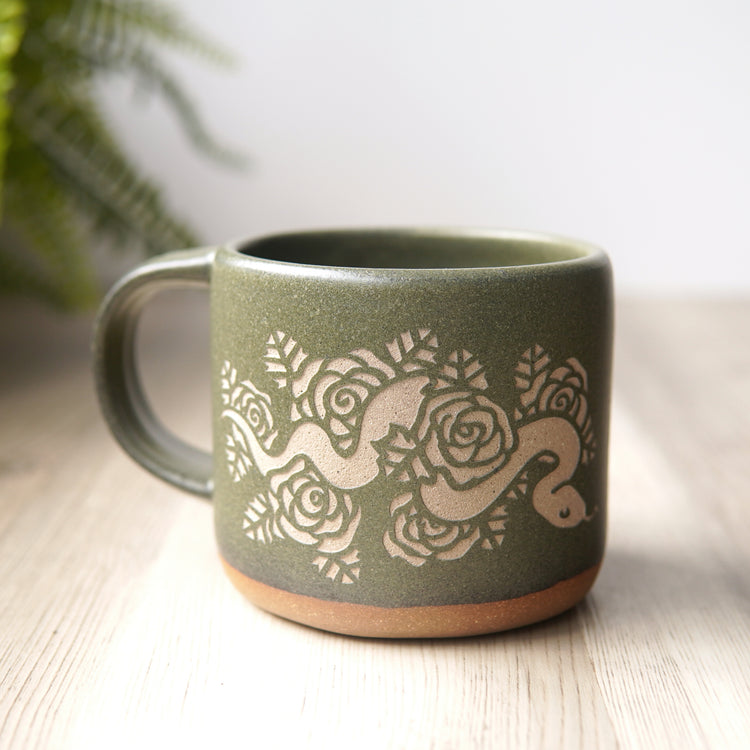 Our Snakes + Roses design features romantic flourishing roses and a serpent as a symbol of rebirth and renewal - the ideal combination for celebrating love or new beginnings!