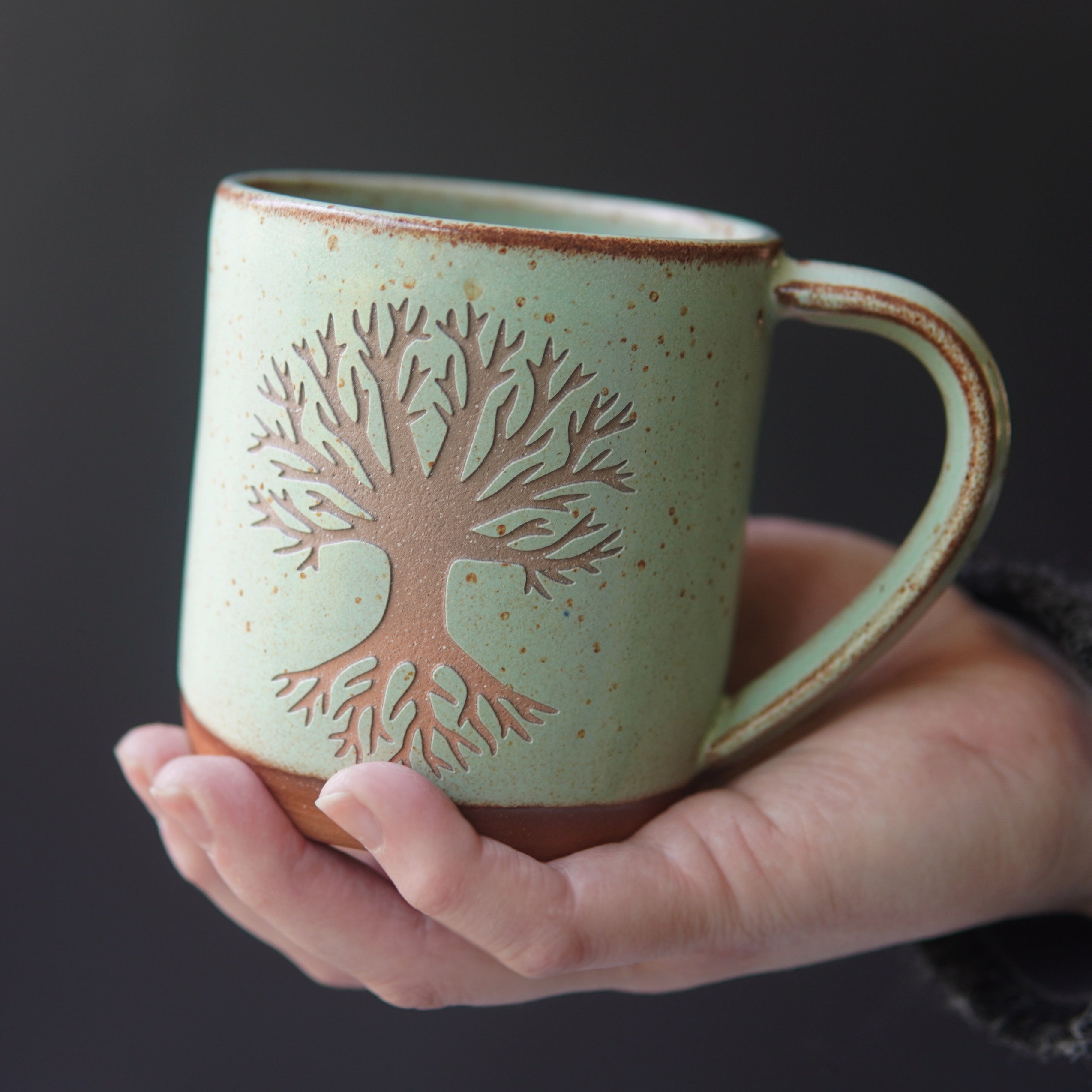 Sip from the Tree of Life Mug and feel connected to nature with its handcrafted design featuring the a sacred world tree symbolizing the connection between all of life and death.