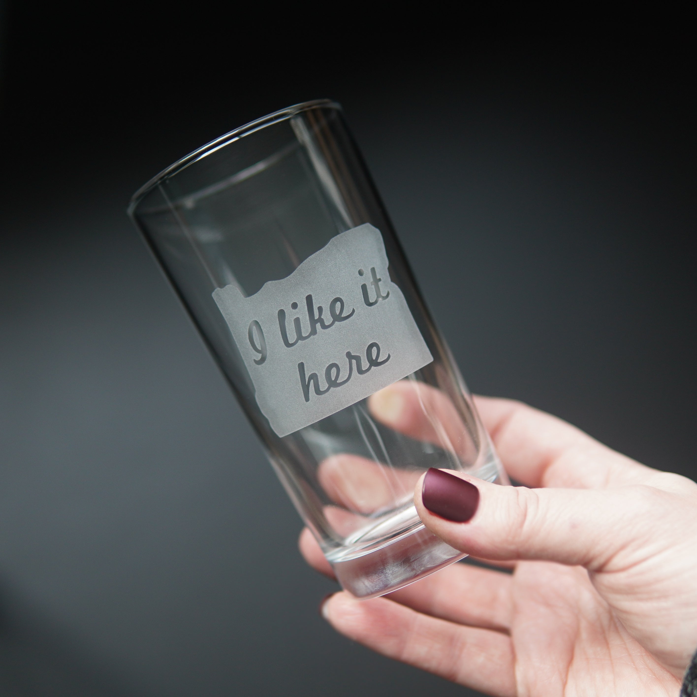 Say cheers to your home state with our Oregon Highball Glass! Featuring an etched design that declares "I like it Here" (because let's be realistic) this cocktail glass is perfect for housewarming celebrations. Sip in style and show your love for the beaver state with this quirky barware.