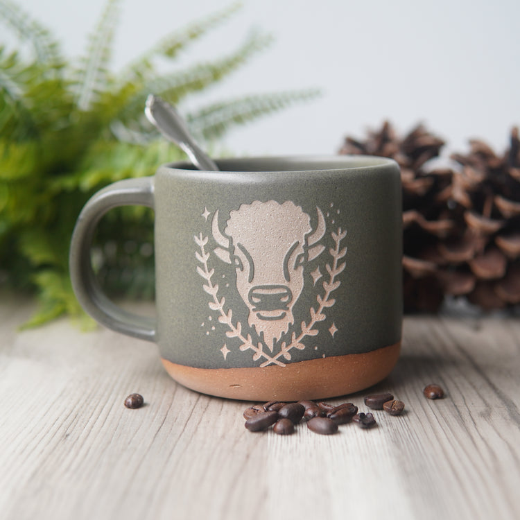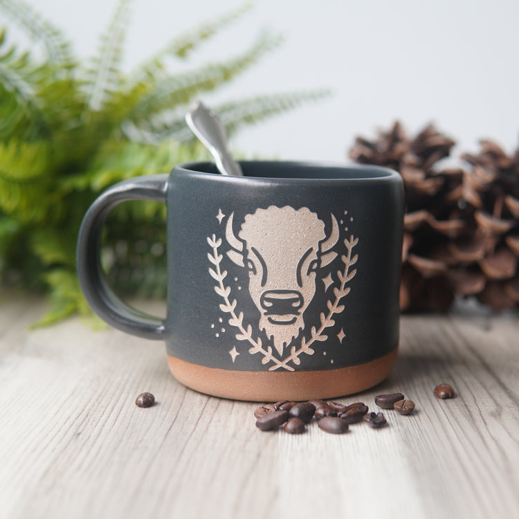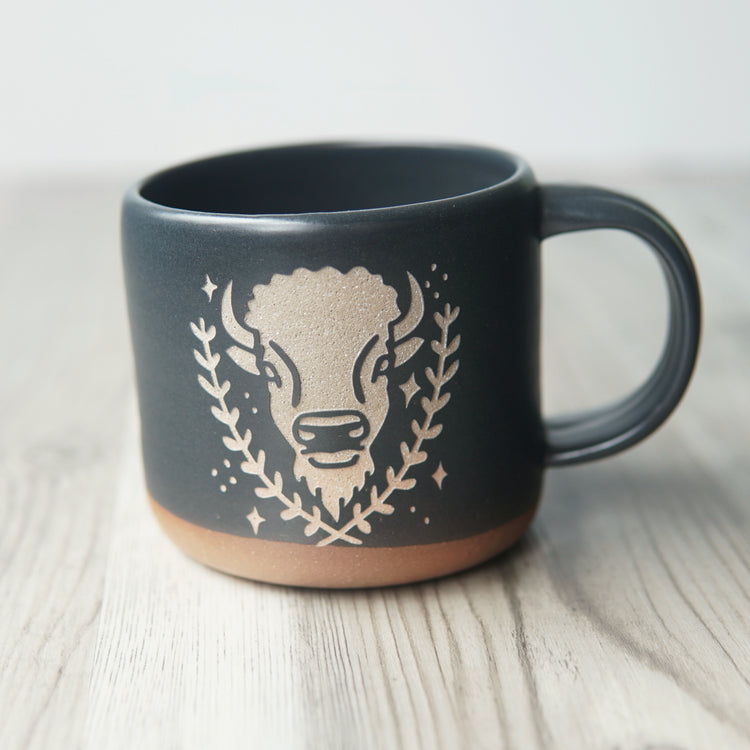 Celebrate America's national mammal with our Bison mug! This etched glassware features our bison design symbolizing strength, bravery, and unity. Perfect for any lover of buffalo wings or fluffy cows, this glass will remind you of the natural beauty of our wildlife (and their adorable noses!).