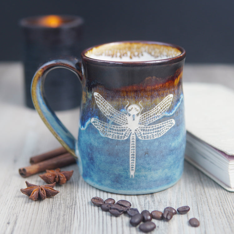 This handmade mug from our Hearth Collection features pretty dragonflies that will surely delight any mom--especially if she's a gardener! A unique handmade gift that is both stylish and functional.