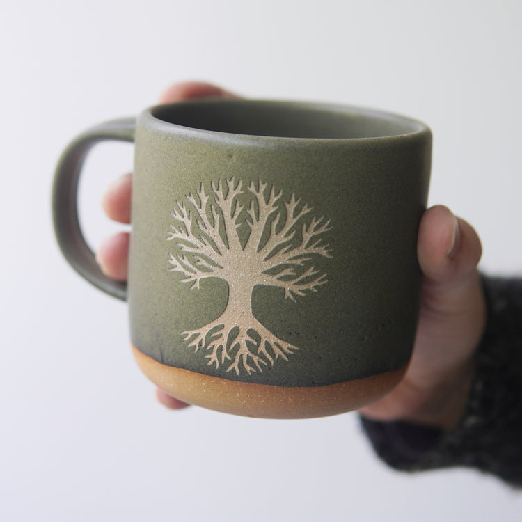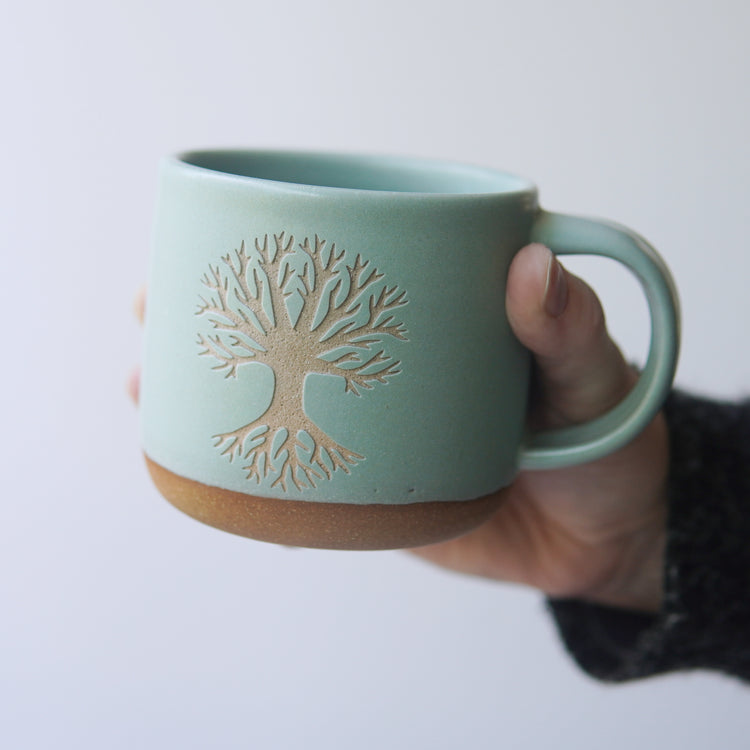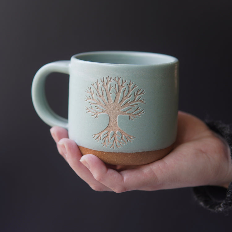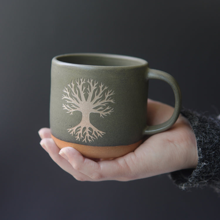 Connect with the sacred energy of nature with our Tree of Life Mug. The beautifully handcrafted forest style pottery features the symbol of the tree of life, representing the connection and harmony between all life and death. Feel the oneness of the universe with every sip.