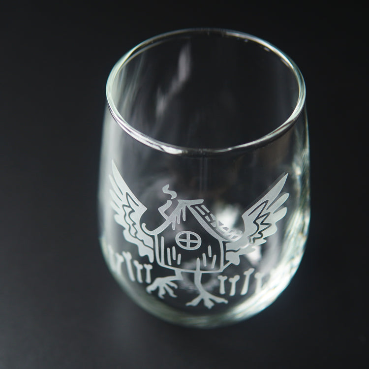 Baba Yaga's hut with chicken legs is here to keep you company with your glass of wine. Celebrate spooky folktales with our classic stemless glass--perfect for Halloween drinks everyday!