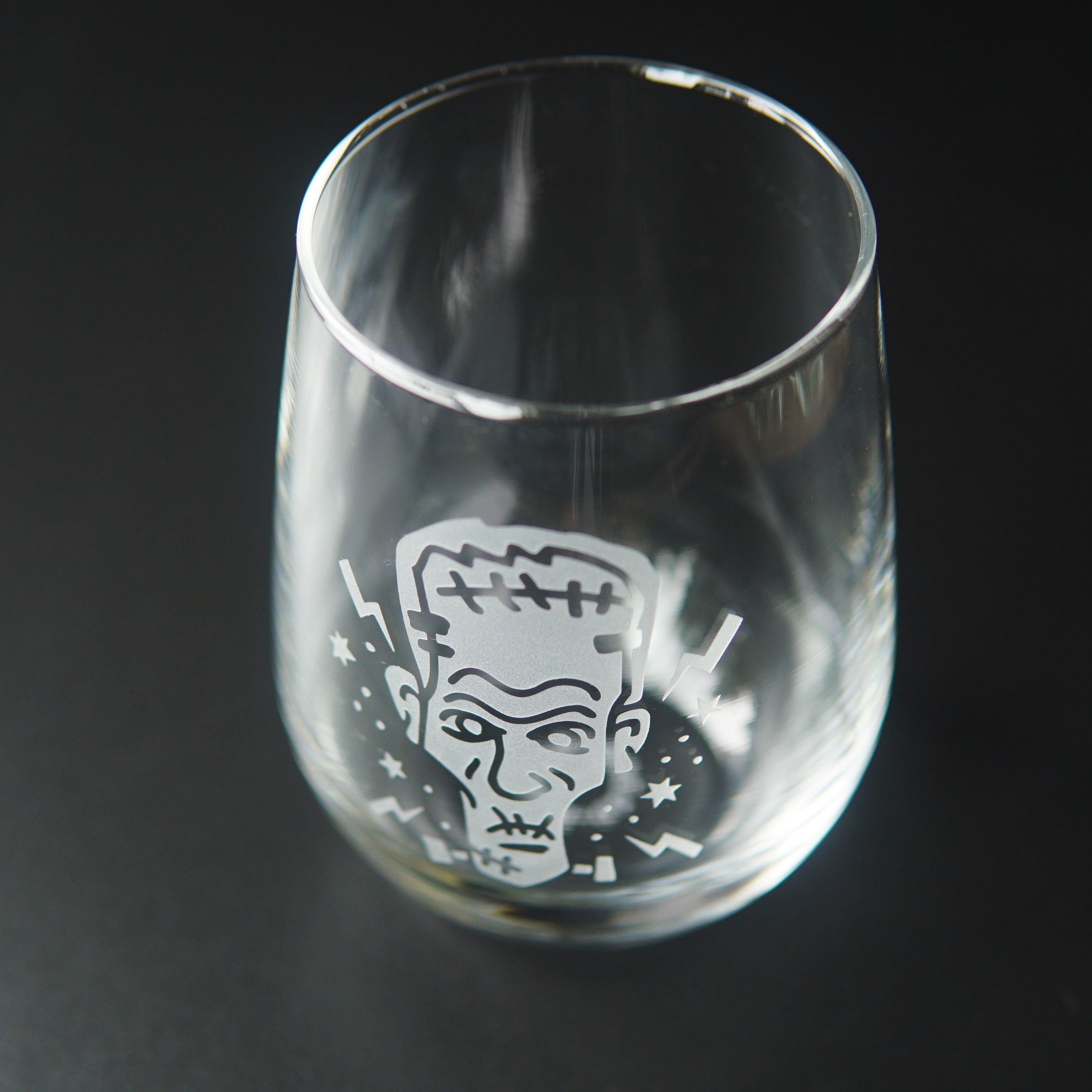 Jolt yourself back to life with our Frankenstein stemless wine glass! This classic monster barware adds a touch of classic horror to your goth kitchen so you can celebrate Halloween all year long.