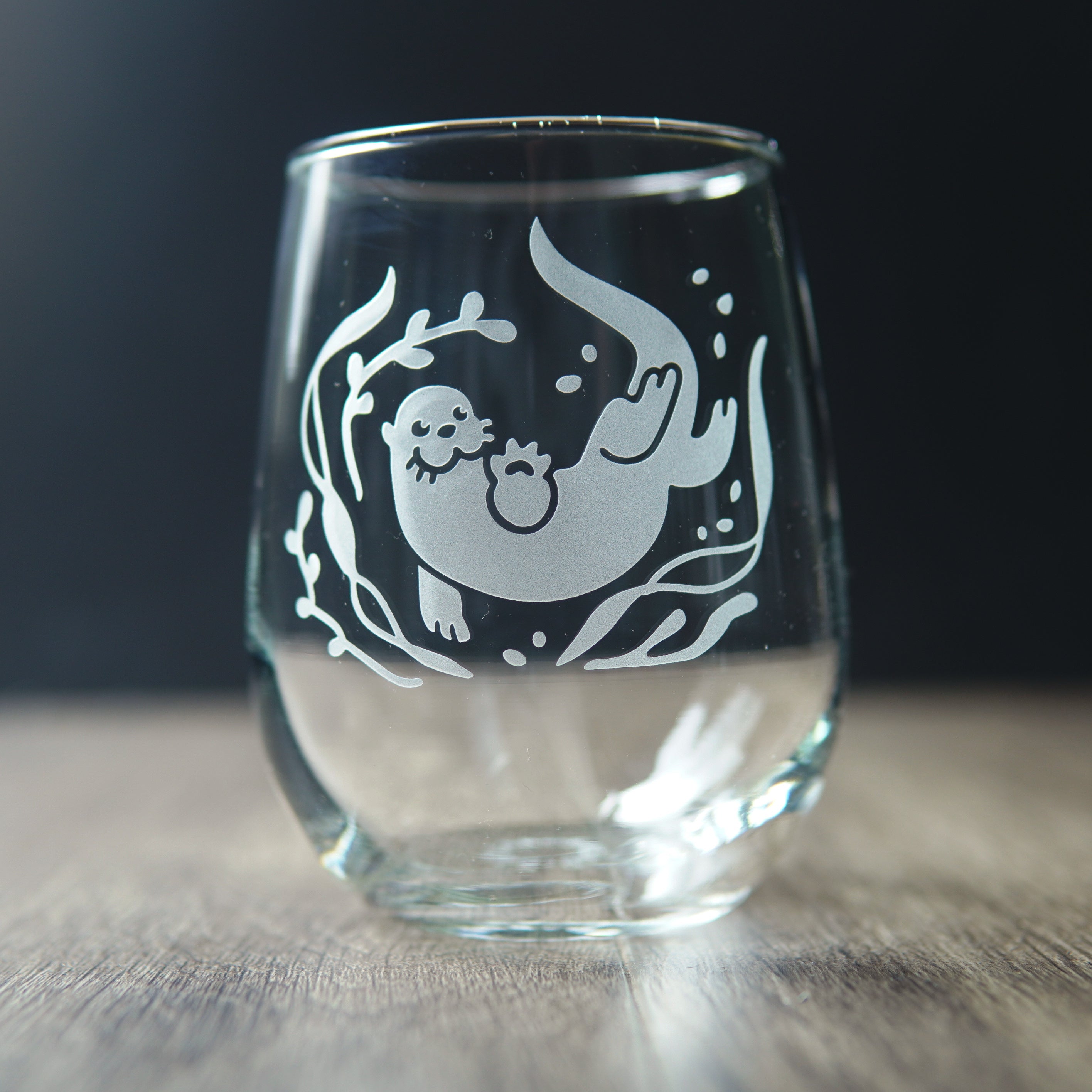Dive in to good times with our Otter wine glass! Etched with a playful river otter frolicking underwater, this glass is perfect for aquatic nature lovers. Otters symbolize curiosity and intelligence, and everyone loves the quirky charm of these cute critters.