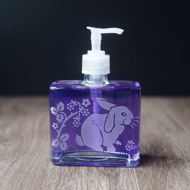 These little trickster rabbits are hanging out in their briar patch, nibbling on blackberries all day long. Their energy is abundant and fertile. Each soap dispenser shape has a different rabbit design on it.