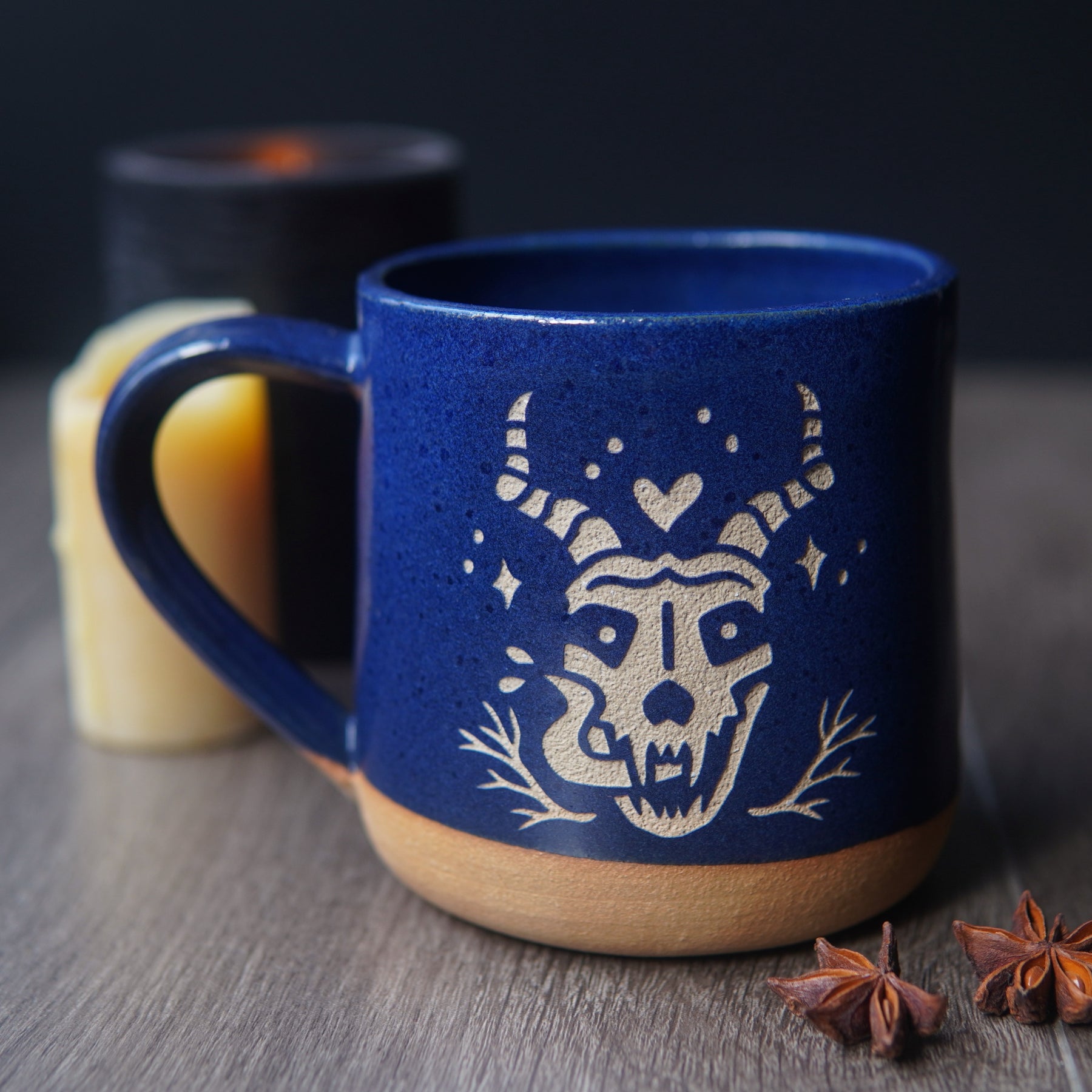 If you're the type of person who reads romance novels about horny skull monsters, then we can be friends! This long-tongued beast has unrealistic anatomy, and he's here to please. This cozy pottery mug is perfect for curling up with a good book and a cup of tea.