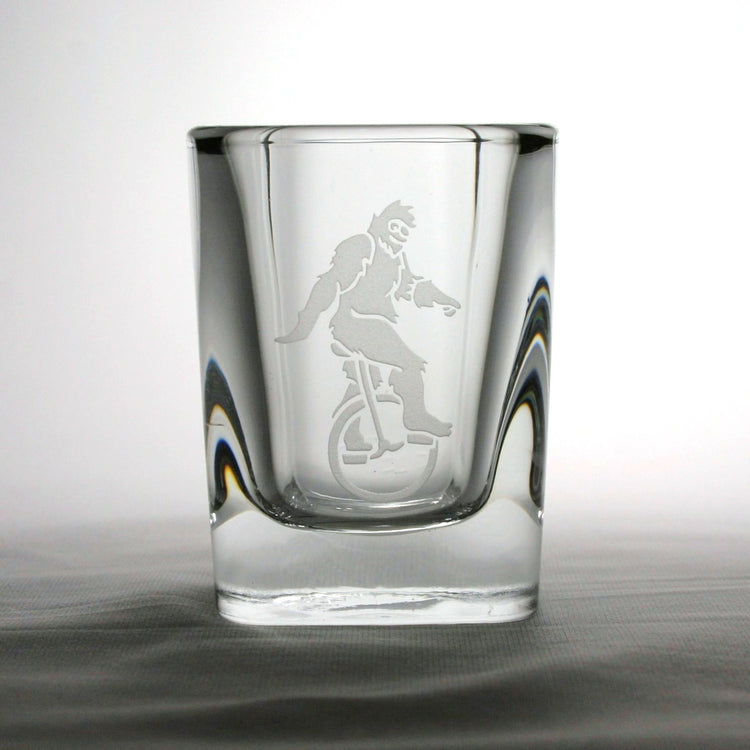 Sasquatch unicycle pint glass by Bread and Badger