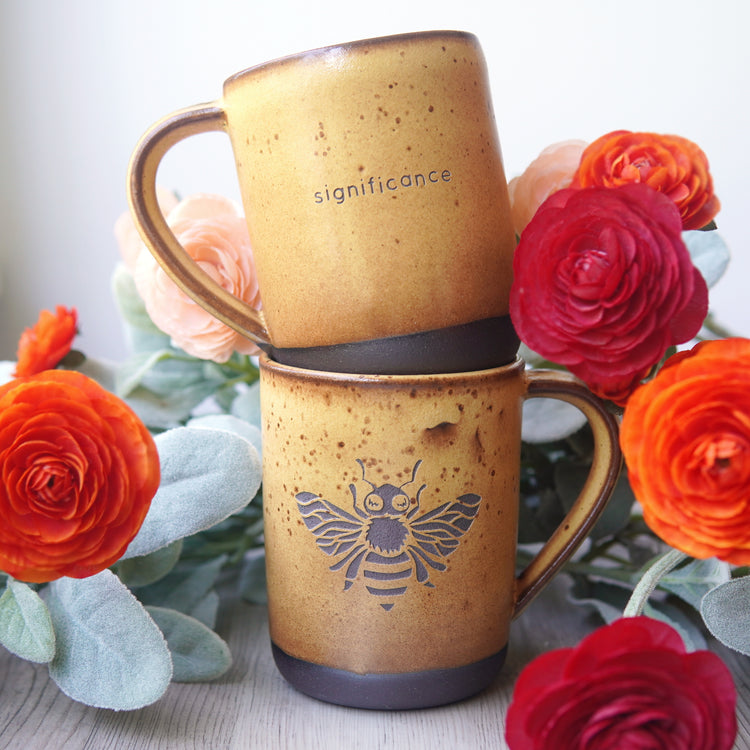 This beautiful bee mug celebrates renowned author Seth Godin's latest book, "The Song of Significance". Featuring inspirational quotes from the new book, it's perfect for those striving to be leaders, good bosses, and game changers. Enjoy your coffee with a daily reminder of your potential!