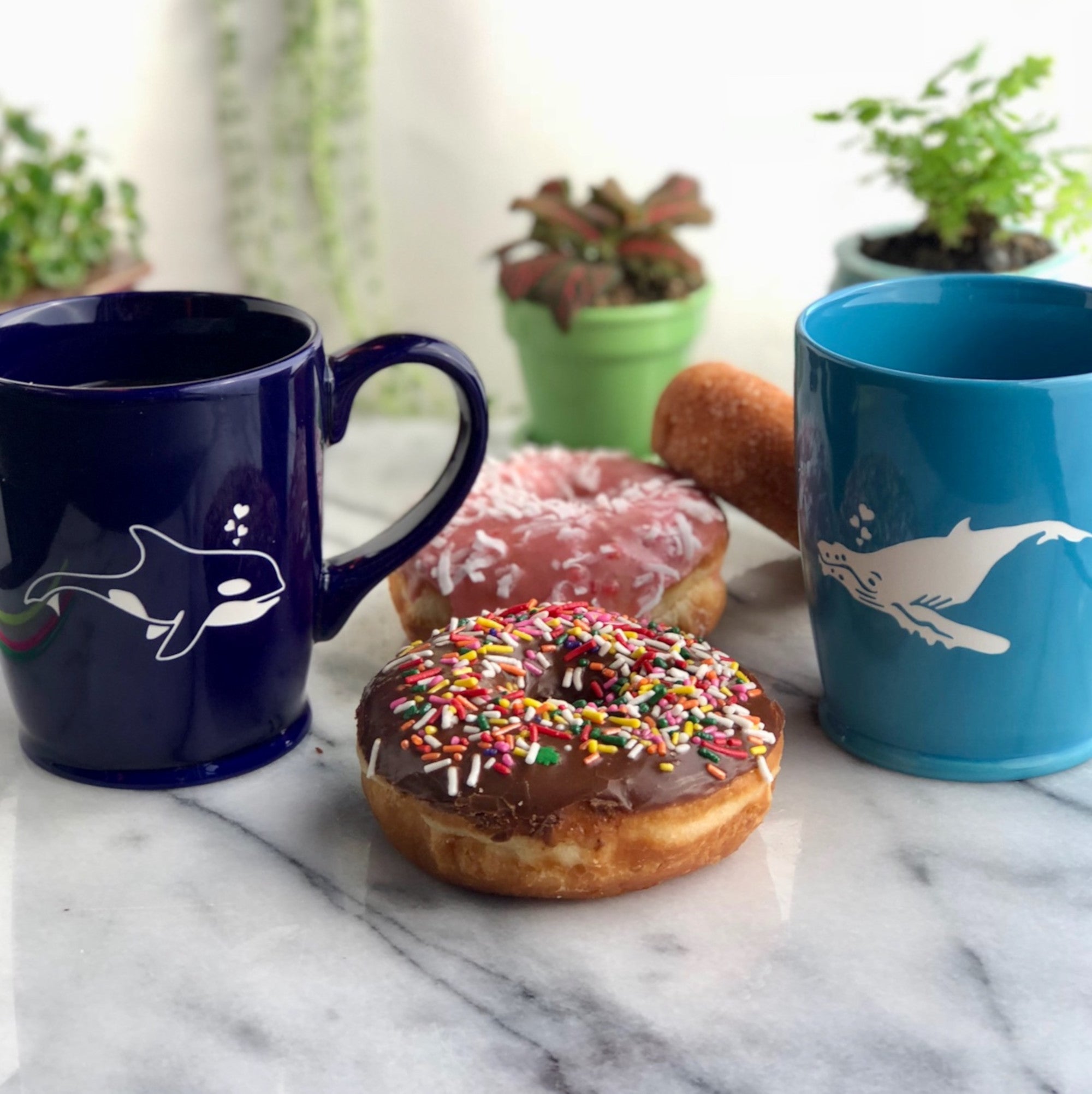 These whale cups make a great gift for ocean beach lovers, or best friends from different coasts. My original designs feature an Orca (killer whale) or Humpback whale, with little hearts bubbling out of their blowholes. Together, they look like they're in love when facing each other. Great for beach weddings!