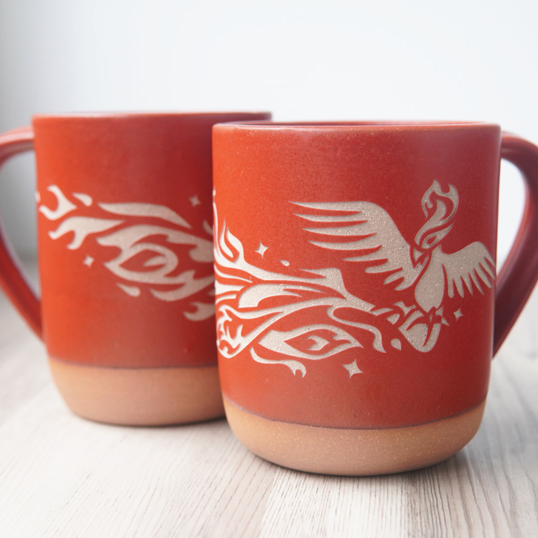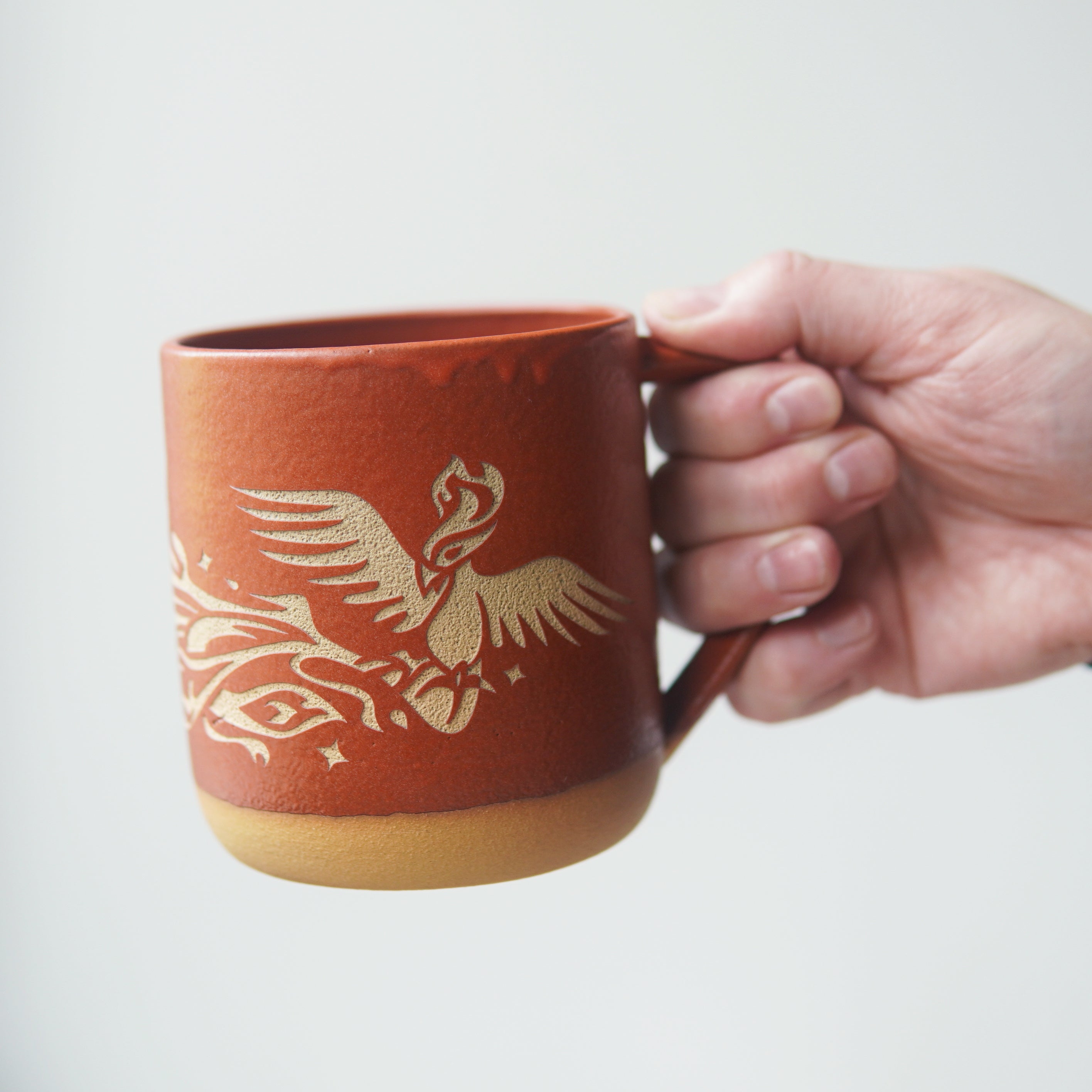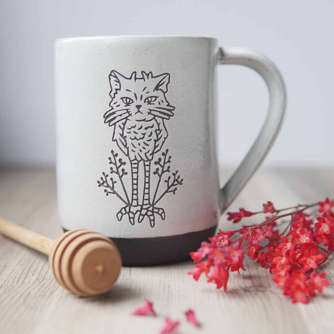 Designs feature Portland Bridges, Rabbits, a Capybara Cat, an Owl Cat, a Dragon, a Phoenix, a Wolf, and a Raccoon. New ceramic styles include the Introvert line of locally handmade speckled mugs and tumblers.