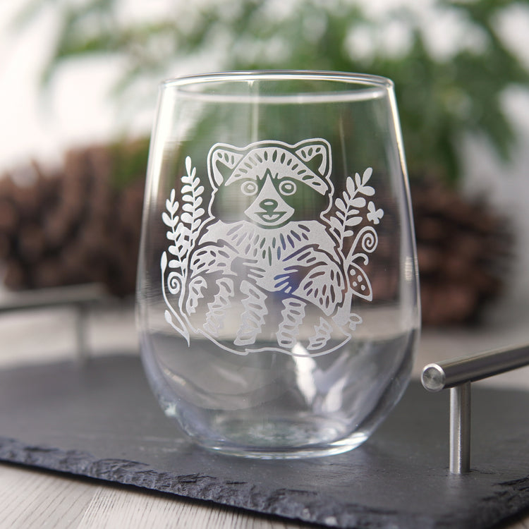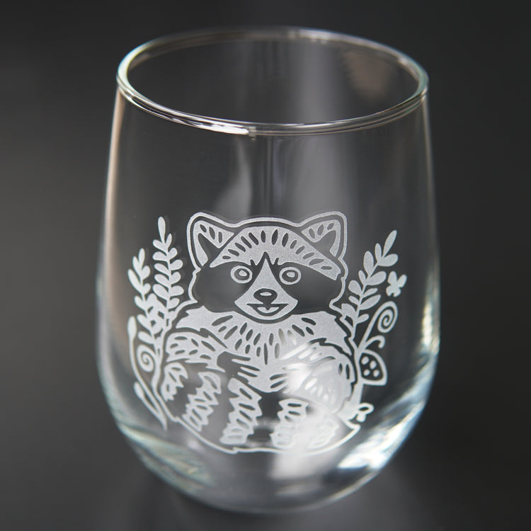 Elevate your drinking experience with our high-quality engraved stemless wine glass featuring an adorable raccoon design. Perfect for nature lovers, animal enthusiasts, and anyone who wants to sip in style. Did you know raccoons are highly intelligent and use tools?