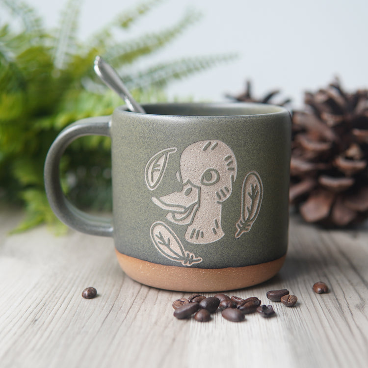 Show your love of farm animals with our original Duck mug. Ducks are good luck! They symbolize emotional connection and empathy, as well as fertility and abundance. Their molting and migration represent transformation and new beginnings.