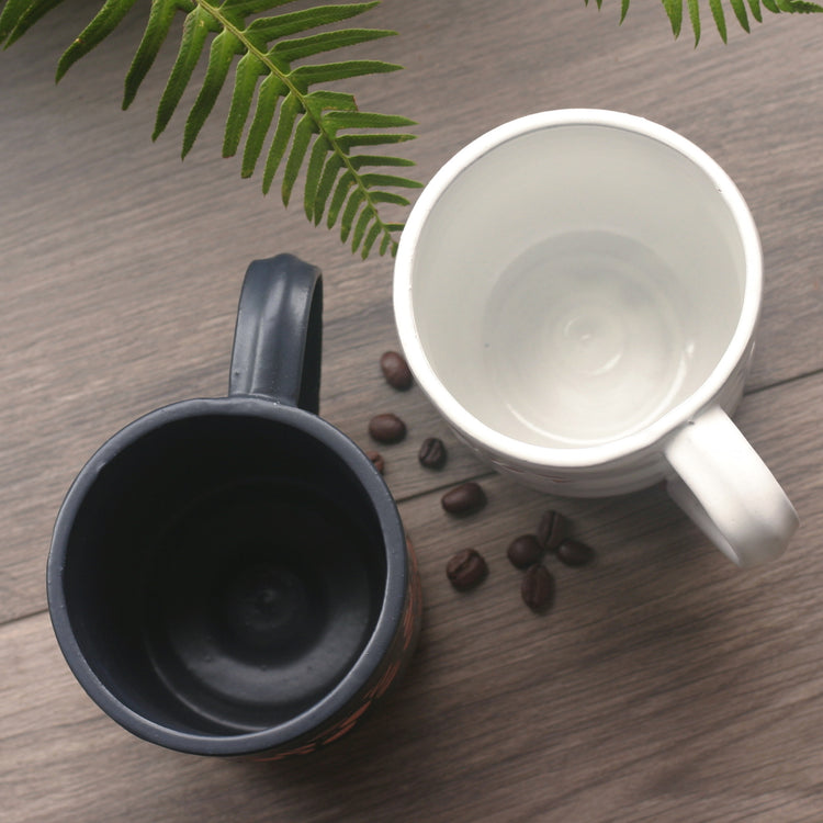 Order the perfect handmade mug, with one of our stock designs! Contact us about custom monograms or text for an additional fee. These are completely made in Portland, Oregon in small batches, so stock will be limited.