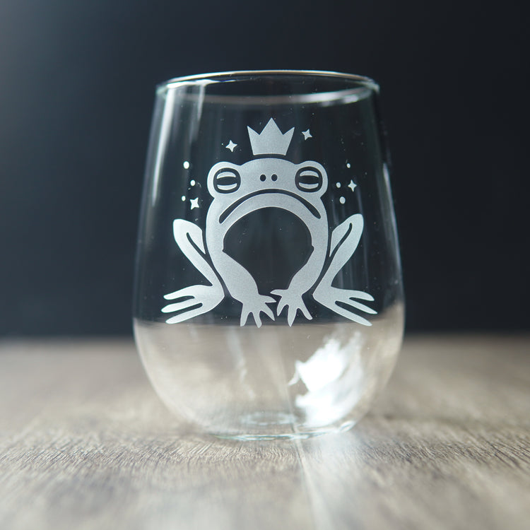 Leap into a fairy tale with our Frog Prince wine glass! This etched glass features a charming prince design that will put a playful spin on your next drink. Frogs bring good luck and transformation, so you're summoning positive magic with every sip!