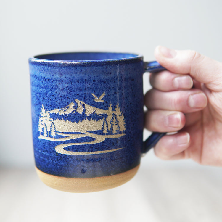 *The cobalt blue mugs we have are darker, and more evenly colored than shown. New photos coming soon!