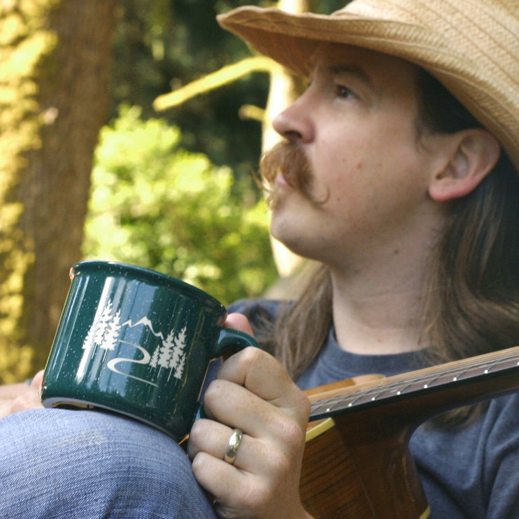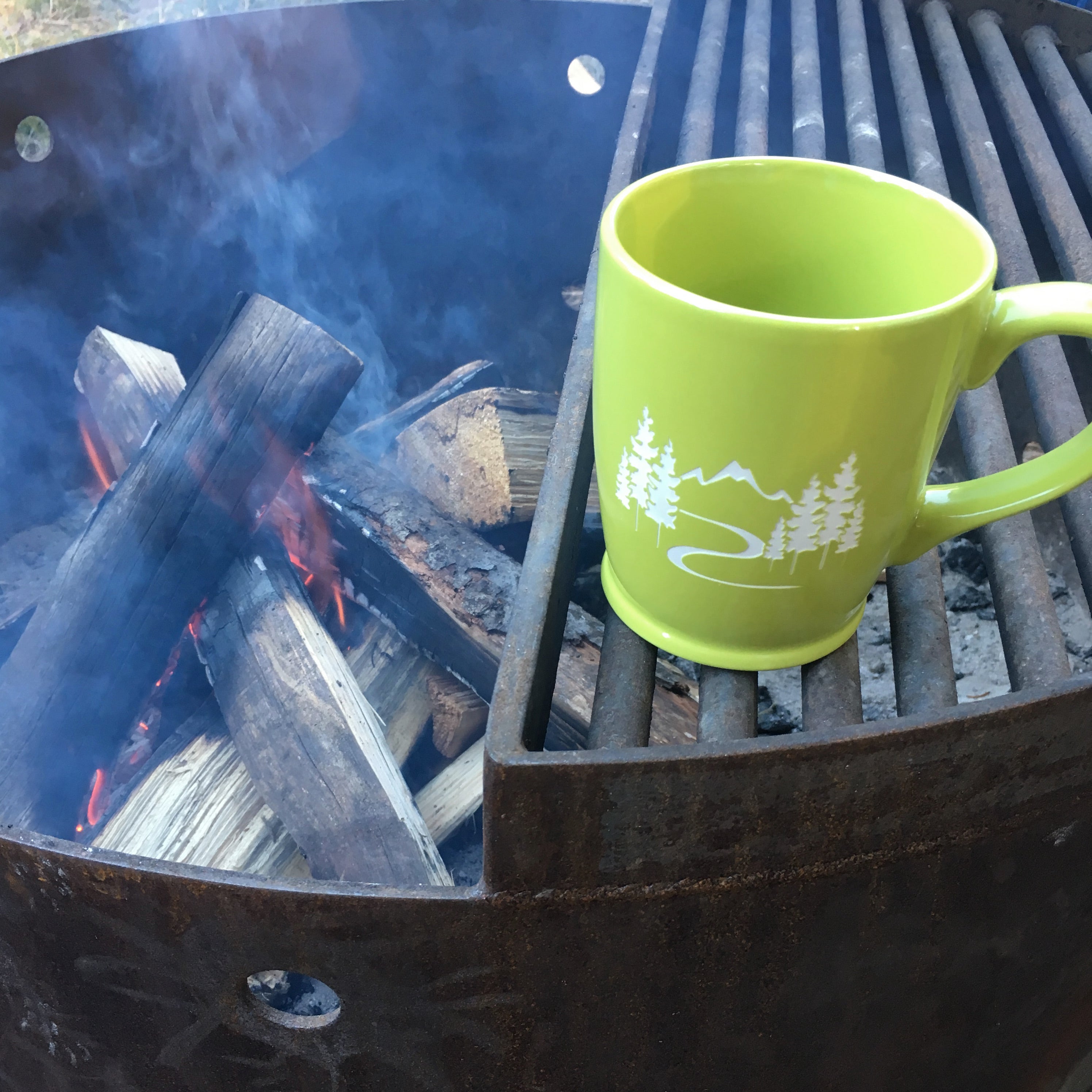 I was excited to stumble upon a local artist's work, and even more to find a ceramic camp-style coffee mug. It's great quality, feels good weight-wise in your hand, and looks good. The sandblasting allows you to put the mug in the dishwasher without fear of the design washing off, but we have babied the mug and hand wash it each night because it feels so special.