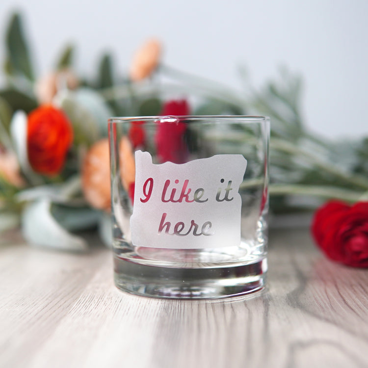 I like it here in Oregon! Show your home state pride with this custom etched cocktail glass in your favorite state outline. This is a thoughtful gift for a PNW traveler's birthday, or as a wedding gift. See this reminder of your hometown every time you celebrate something big, or have an evening drink.