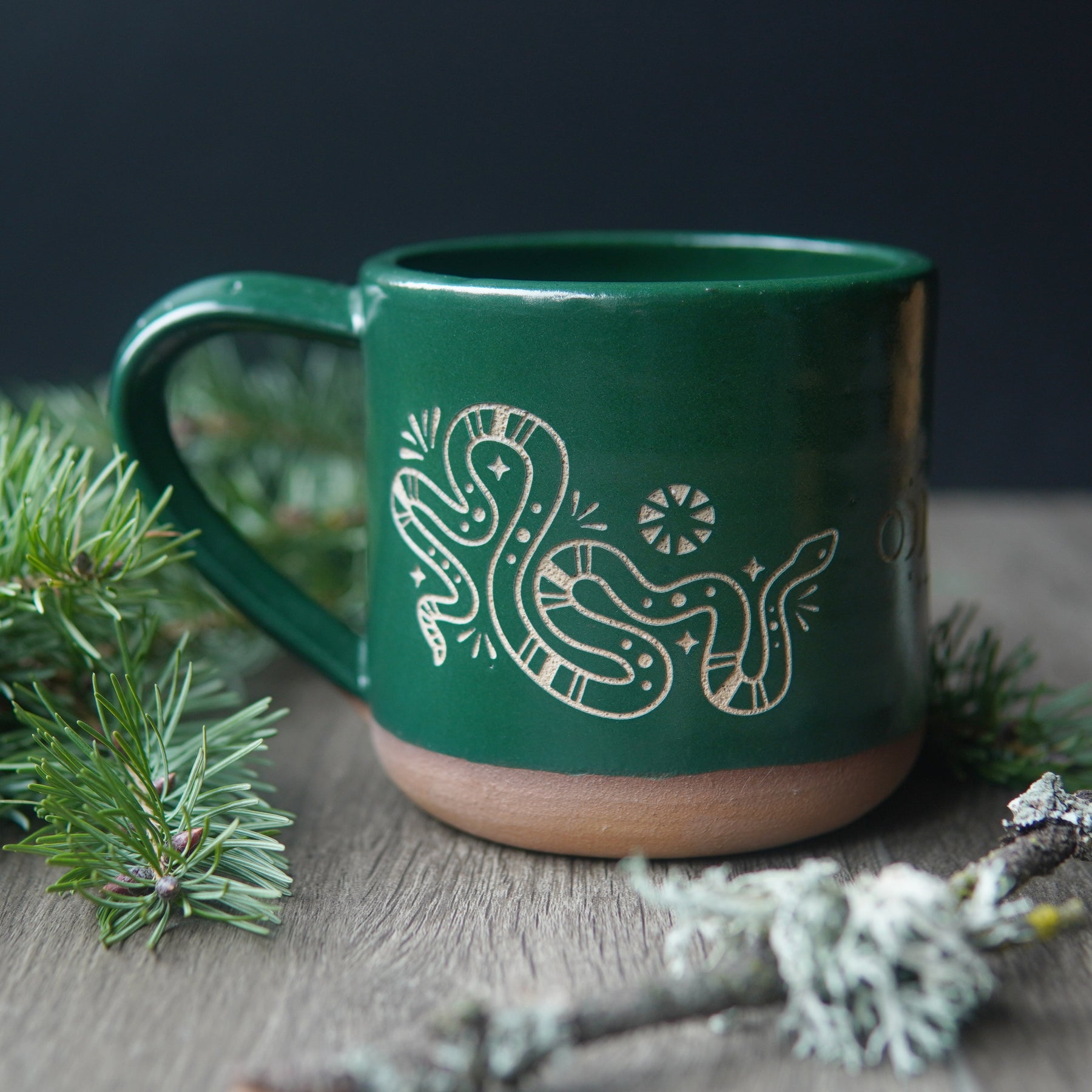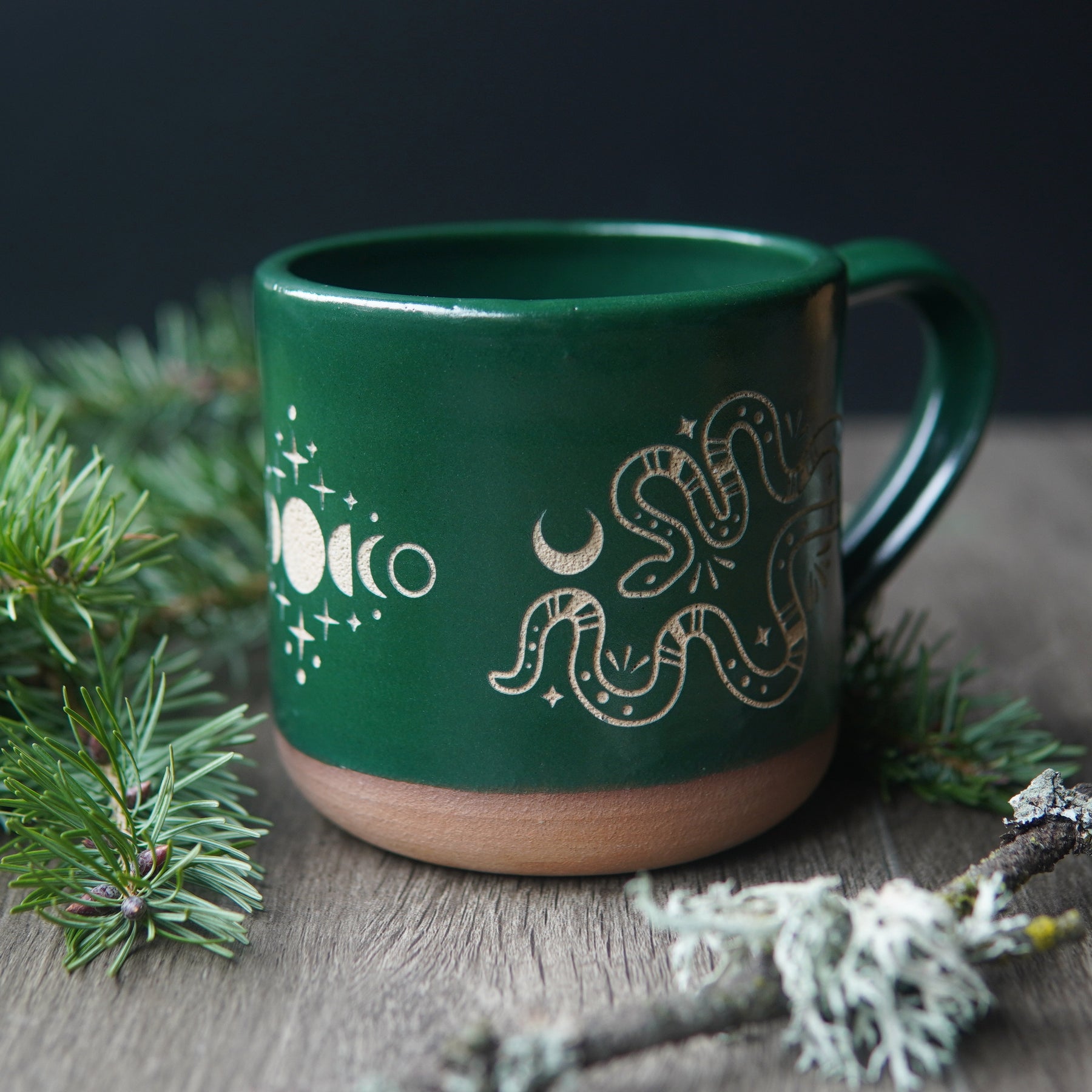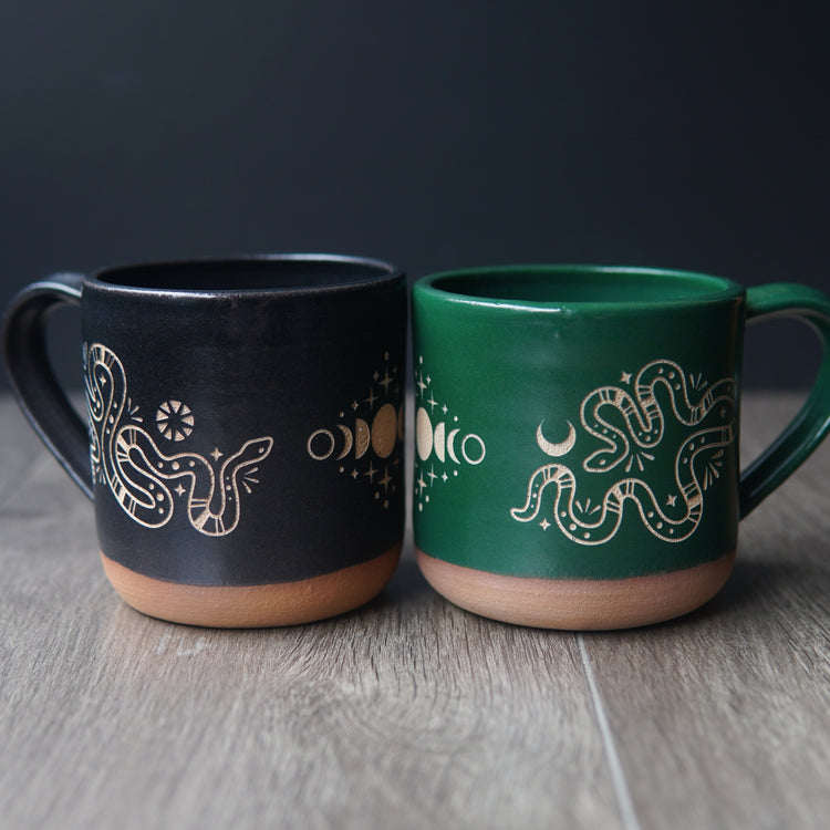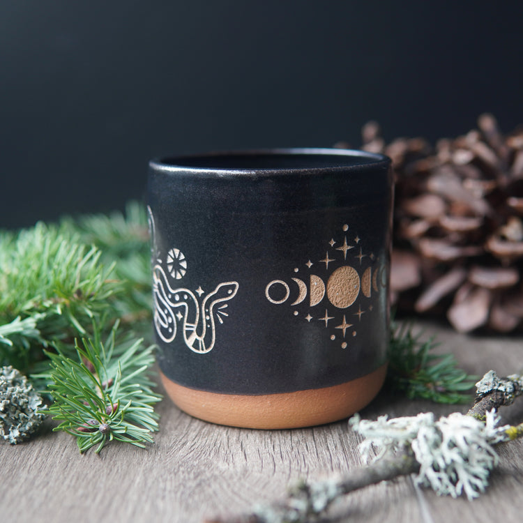 Snakes + Moon Phase Mug, Farmhouse Style Handmade Pottery
